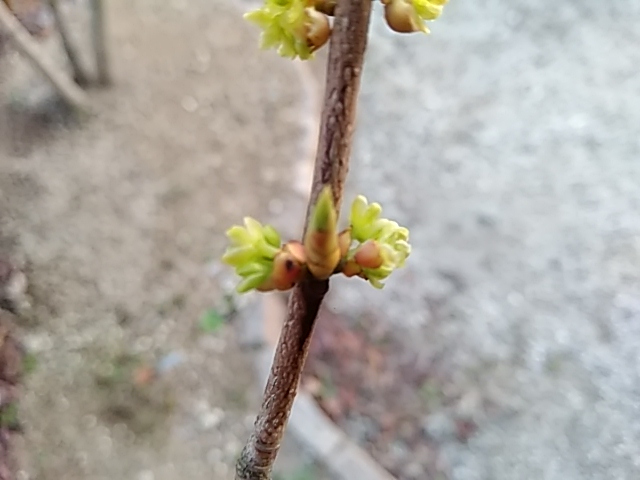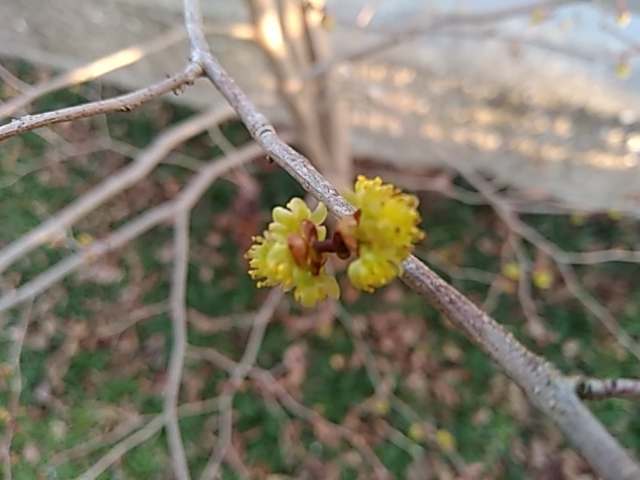 3 ~ 4 月雌雄異株で淡黄色の花が複数集まった散形花序を付けます。秋にはクスノキ科特有の芳香のする球形の果実がなります(雌株)。同時期の黄葉も楽しめます。盆栽や雑木の庭に好まれます。