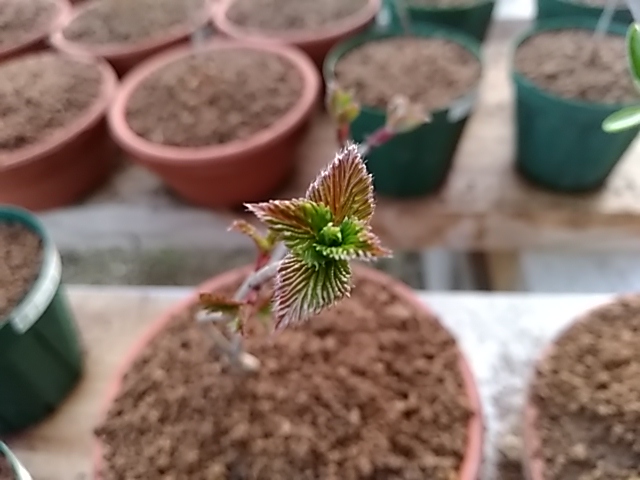 種子から育てている為に緑色の葉が出ることもあります。今のところ新緑から落葉まで濃紫色で色艶最高です。