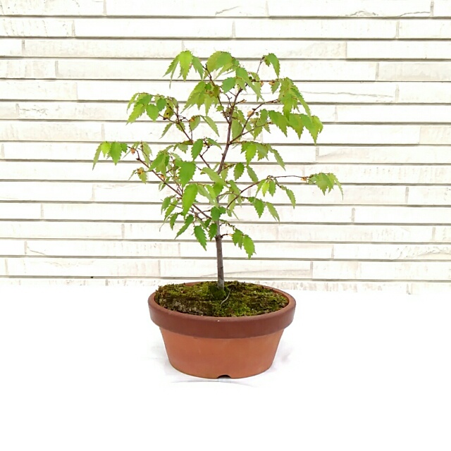 秋の黄葉は黄色からオレンジ色に変化し、味わいがあります。盆栽では、半球形を描く独特のほうきづくりを楽しみます。また、寄せ植えも盆栽でとても人気です。